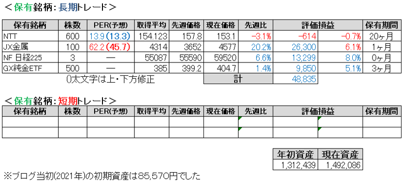 停戦合意で暴騰したので、今週の結果は良かったんですが、主に半導体など日経平均株価が上げた1週間でした。