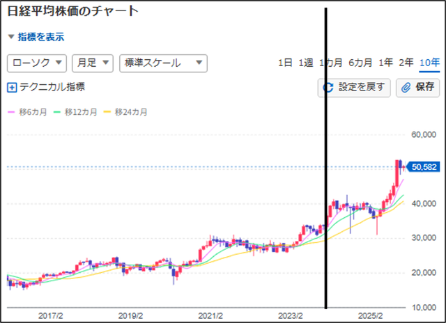 グラフで見ると、なんだかんだTOPIXと日経平均は右肩上がりですね。
