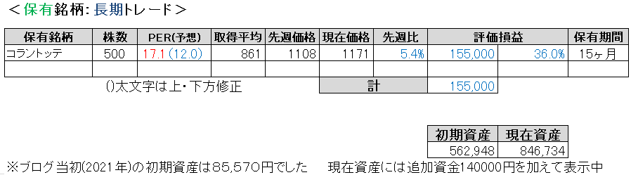 なぜか主力株のコラントッテが週末にかけて66円も上げました。