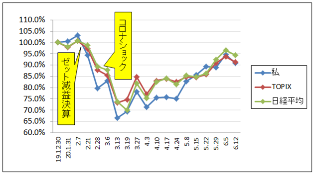今週で、私の損益率がTOPIXと、日経平均の損益率を超えました。