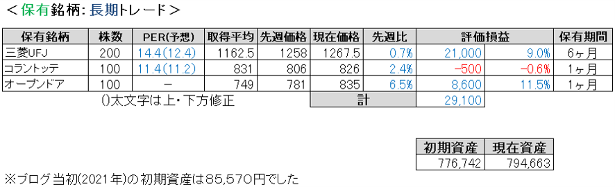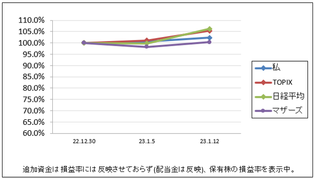 先週比は私が+1.7%、TOPIXが+4.3%、日経平均が+6.6%、グロース250が+2.0%でした。