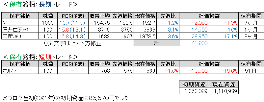 下げましたが、一時的なもの?だったのかちょっと戻して今週は終わりました。