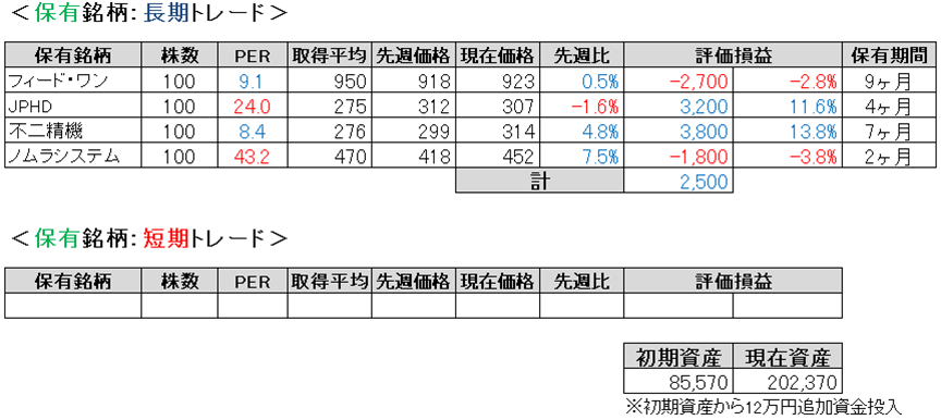 (※追加資金投入は勘案せず、保有銘柄の損益率のみ反映)