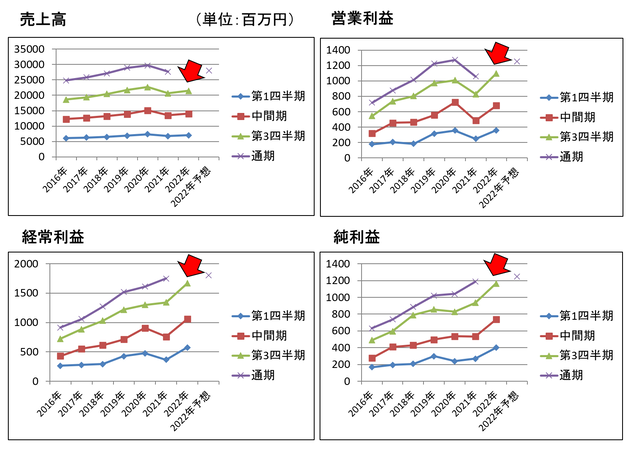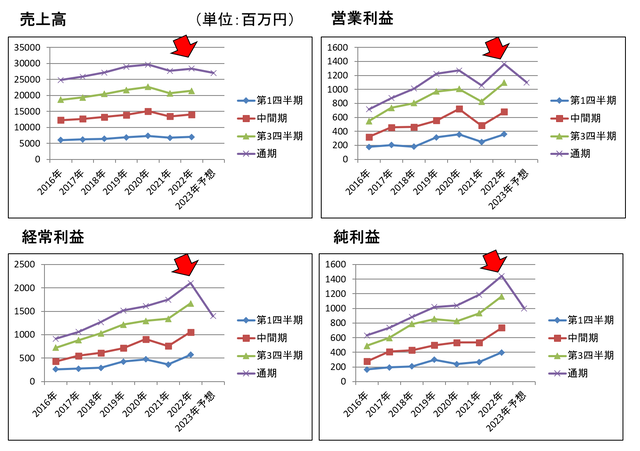 これまでの推移は以下の通りです(赤矢印が今期)。