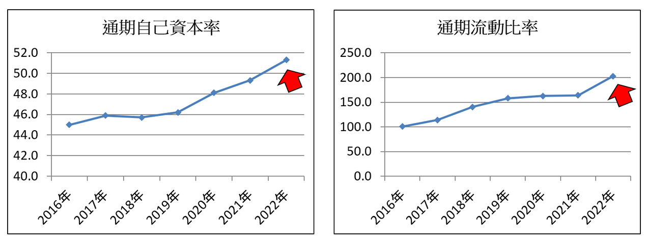 自己資本率は50%を超えており、流動比率も約200%と、どちらの指標も優良範囲に入っています。